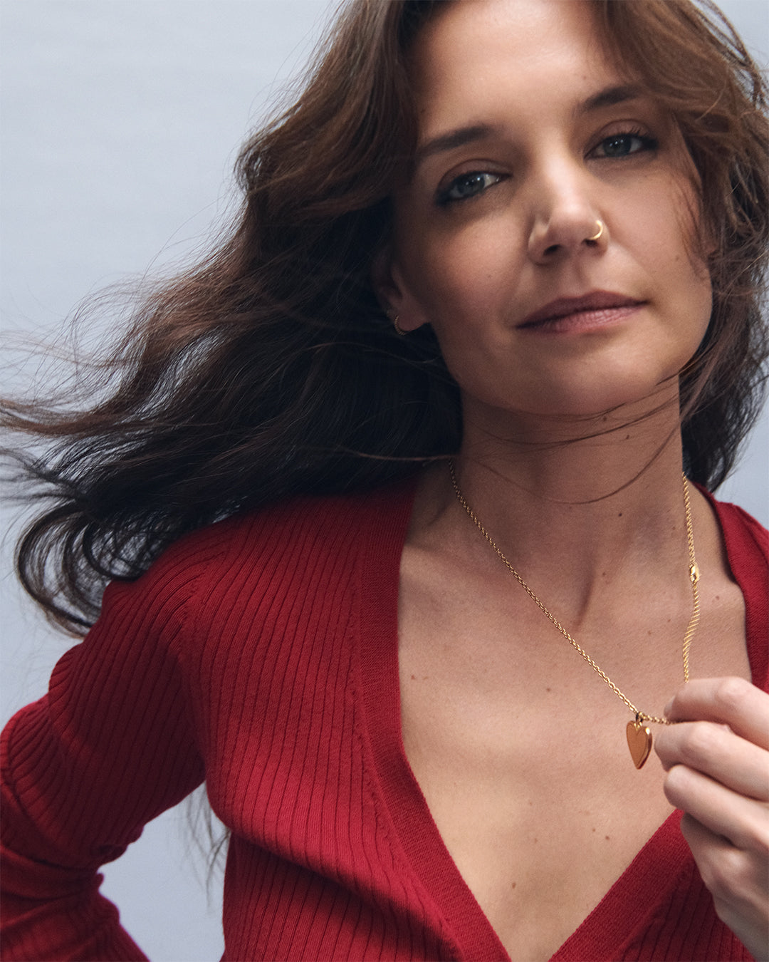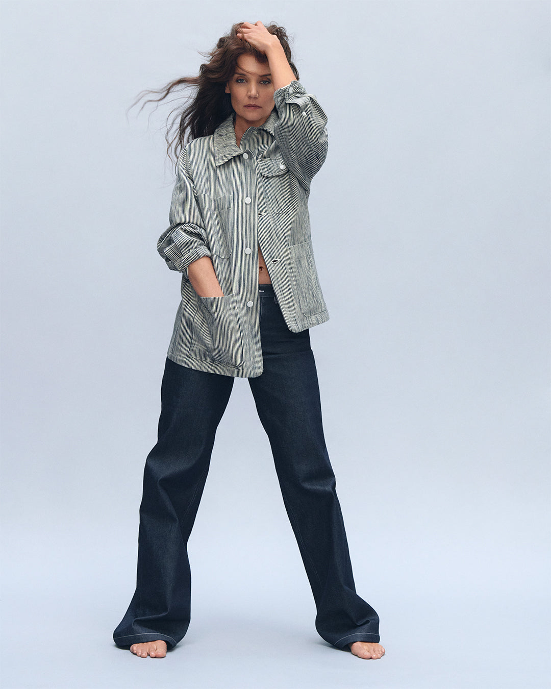 L'actrice américaine Katie Holmes, fidèle cliente d'A.P.C. depuis les années 1990, a collaboré avec la marque parisienne pour une interaction composée d'une douzaine de pièces très féminines et d'une ligne d'accessoires extrêmement raffinés.