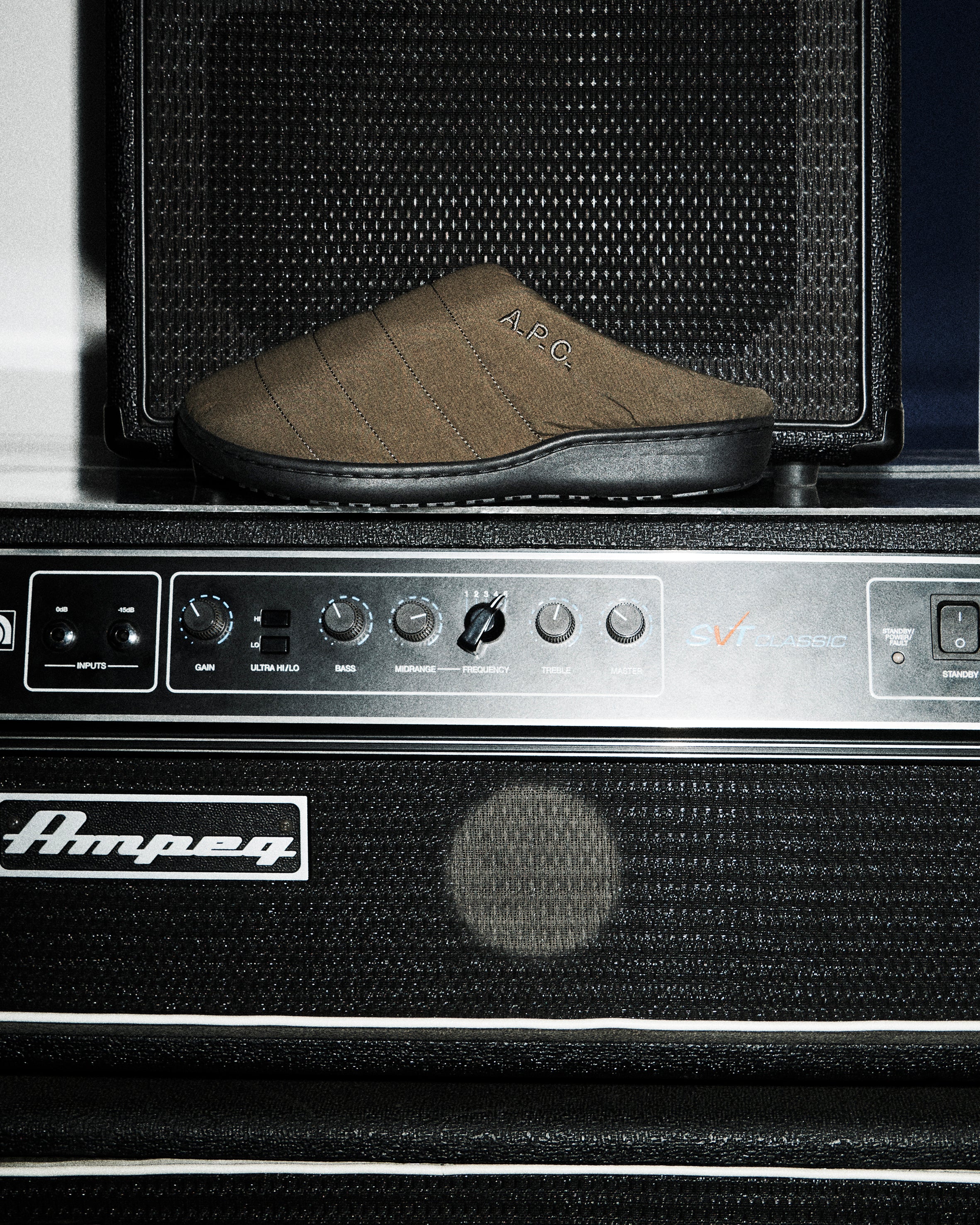A.P.C. s’allie avec SUBU et propose une capsule exclusive autour des célèbres « sandales d’hiver » de la marque japonaise, prisées dans le monde entier. A cette occasion, les deux modèles phares de SUBU ont été imaginés dans les matières et les couleurs emblématiques d’A.P.C. : le noir, le beige, le kaki en nylon et la fausse peau lainée. En tout cinq modèles mixtes qui permettent de combiner chaleur, douceur et fonctionnalité. Cette capsule est disponible en boutique et en ligne, juste à temps pour les cadeaux de fin d’année.