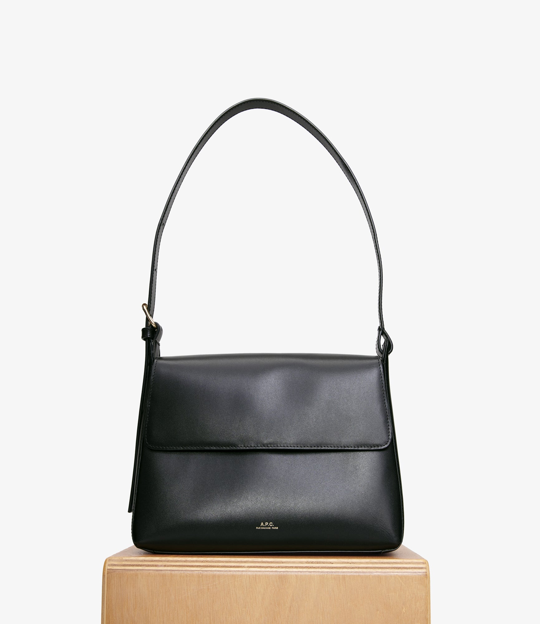 Sac minimaliste et intemporel en cuir grainé noir.