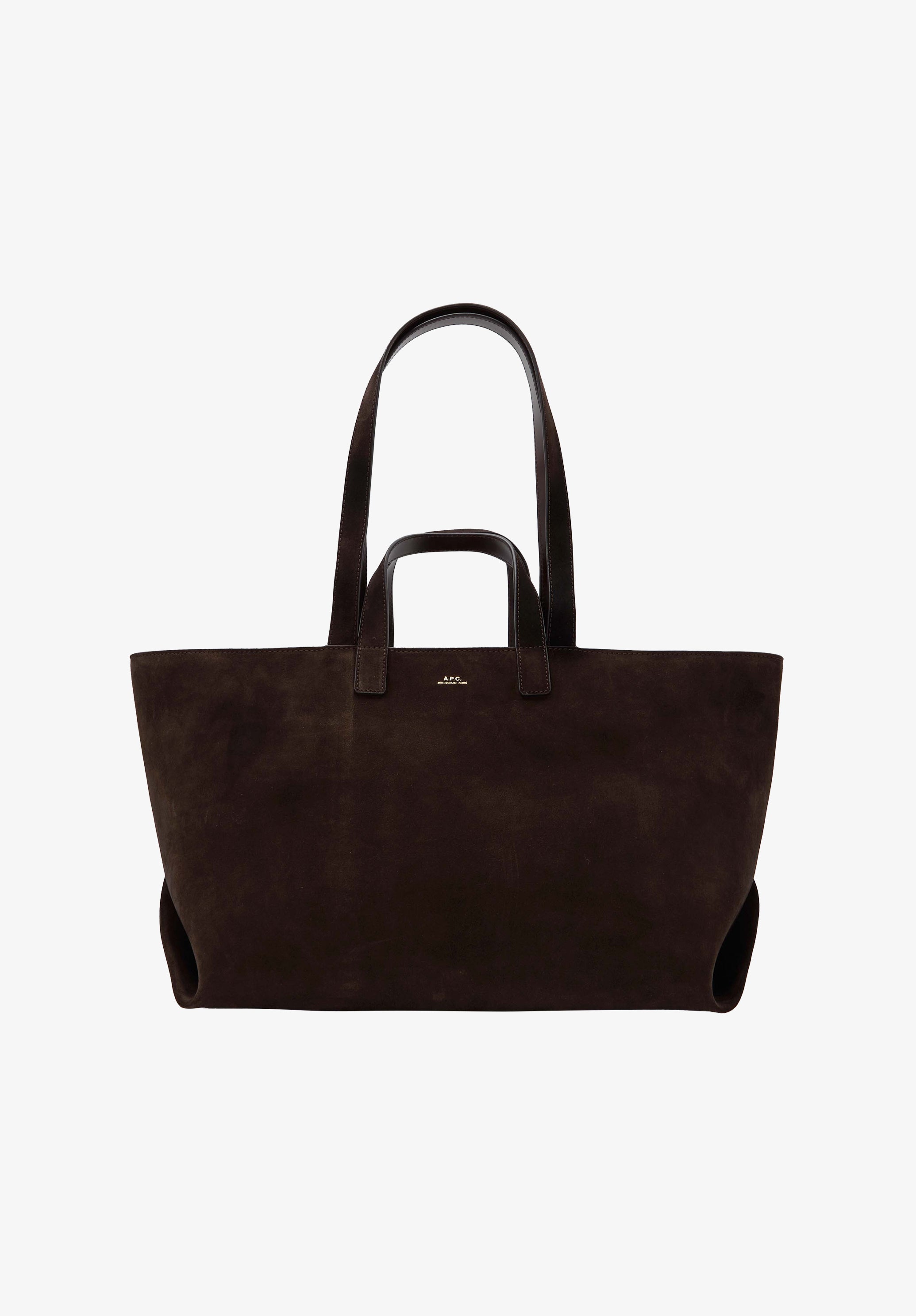 Grand sac trapèze en suede et cuir lisse marron tonka.