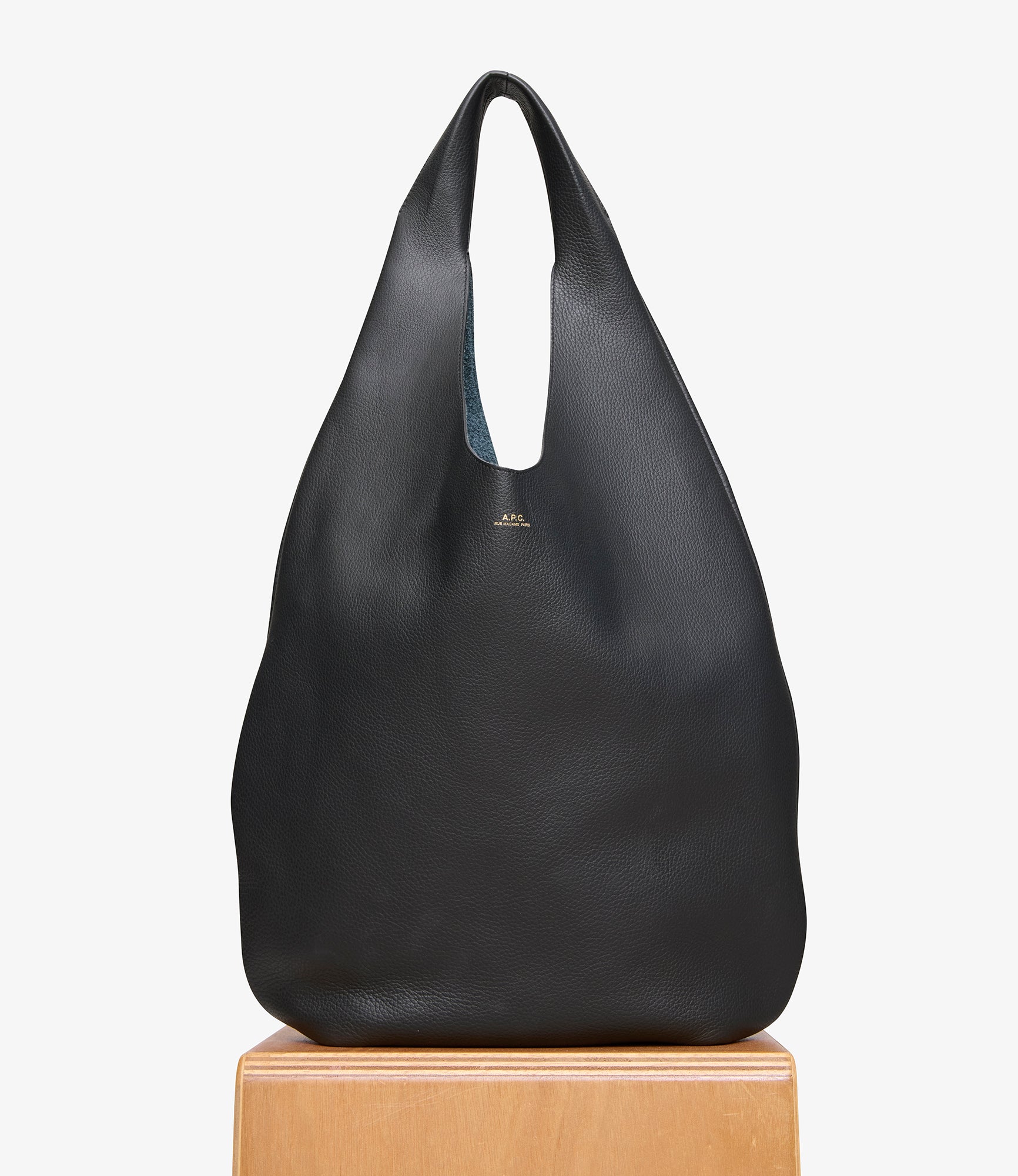 Sac minimaliste et intemporel en cuir grainé bleu marine.